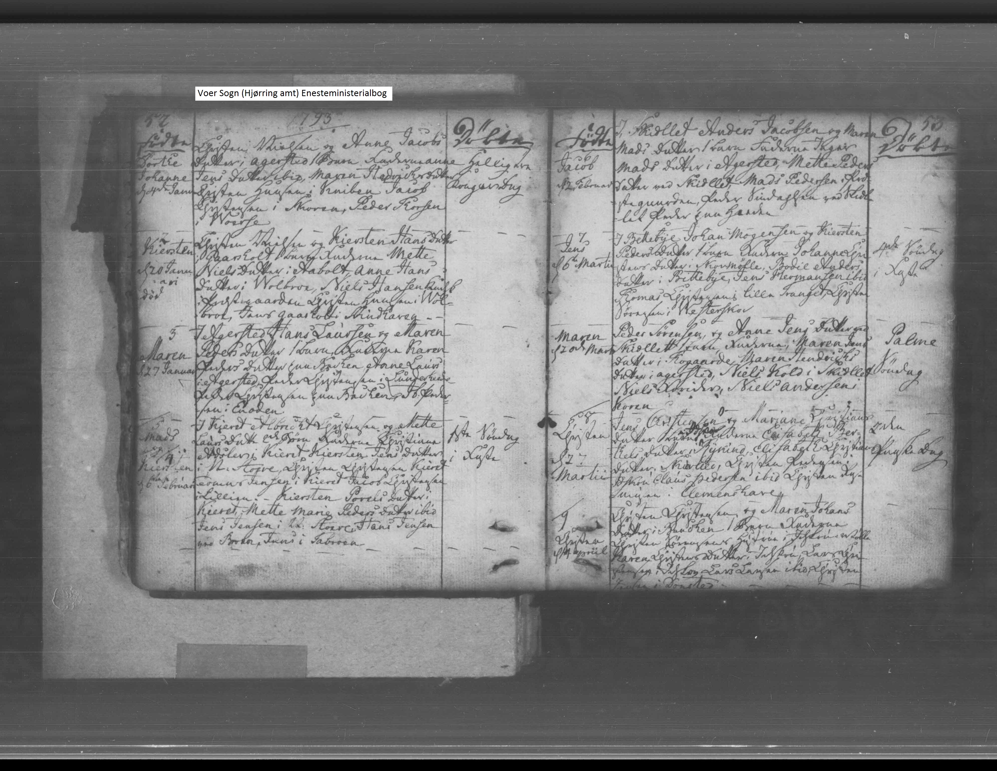 | Noter : KB-1793 Hjørring Amt, Voer Sogns kirkebogNr.4 og 5 /5 Mads og /4 Kiersten Født 6. Februar 1793 I Kjerst Albrect Christ og Mette Laursdatter .... Hjælp til tydning modtages Tvillinger USIKKER FT1801 Hjørring, Dronninglund, Voer, Kjæret, , 42, FT-1801, B6769 Albreit Christensen 57 Gift Mand Bonde og gårdbeboer (f.1744) Mette Laursdatter 43 Gift Hans kone Laurs Albreitsen 20 Ugift Deres barn Jens Albreitsen 16 Ugift Deres barn Peder Albreitsen 11 Ugift Deres barn € Mads Albreitsen 9 Ugift Deres barn (f.1792) Kirsten Abreitsdatter 8 Ugift Deres barn Maren Albreitsdatter 3 Ugift Deres barn Vielse skal eftervise om FT1801 er korrekt familie? Hjælp til tydning - KB-1822 €3327 Hjørring Amt Voer Sogns Kirkebog Nr. 5 opslag 125 Viede 9 Juni i Voer Kirke Ungkarl?? Mads Albreksen 29 Aar Mellkjær?? Ungpige Anne Magrethe Nielsdatter 18 Aar gammel Forlovere er Gaardmand Søren Christensen i ???? og Niels Christen i ?? FT-1834 Hjørring, Dronninglund, Voer, Sønderstore, Gård, 23, , FT-1834, B6778 € Mads Albrechtsen 43 Gift Gårdfæster (f.1791) € Ane Margrethe Nielsdatter 30 Gift Hans kone (f.1804) Jens Madsen 14 Ugift Deres barn (f.1820) Mette Margrethe Madsdatter 12 Ugift Deres barn (f.1822) € Niels Madsen 7 Ugift Deres barn (f.1827) Albrecht Madsen 6 Ugift Deres barn (f.1828) Peder Madsen 2 Ugift Deres barn (f.1832) Margrethe Pedersdatter 61 Enke(mand) Aftægtskone der forsørges af gårdfæsteren (f.1773) Laurs Sørensen 45 Gift Tjenestekarl Inger Jensdatter 57 Gift Hans kone, tjener gårdfæsteren Christen Nielsen 19 Ugift Tjenestekarl Karen Laursdatter 31 Ugift Tjenestepige FT-1840 Hjørring, Dronninglund, Voer, Sønder Store, Gård, 28, , FT-1840, b5854 € Mads Albrechten 46 Gift Gårdfæster (f.1794) € Ane Magrethe Nielsdatter 36 Gift Hans kone (f.1804) Jens Madsen 19 Ugift Deres barn Mette Magrethe Madsdatter 18 Ugift Deres barn € Niels Madsen 13 Ugift Deres barn Albricht Madsen 11 Ugift Deres barn Peder Madsen 8 Ugift Deres barn Christen Madsen 6 Ugift Deres barn Lars Christian Madsen 3 Ugift Deres barn Magrethe Jensdatter 68 Enke(mand) Aftægtskone og forsørges af husfaderen Peder Jensen 30 Ugift Tjenestekarl Ane Andersdatter 28 Ugift Tjenestepige FT-1845 Hjørring, Dronninglund, Voer, Voer, Sønderstore en gaard, 96, FT-1845, B7255 € Mads Albrectsen 52 Gift Gaardmand Heri sognet (f.1793) € Ane Magrethe Nielsdatter 41 Gift Hans kone Heri sognet Jens Madsen 25 Ugift Deres børn Heri sognet Mette Magrethe Madsdatter 23 Ugift Deres børn Heri sognet € Niels Madsen 18 Ugift Deres børn Heri sognet Albreth Madsen 16 Ugift Deres børn Heri sognet Peder Madsen 13 Ugift Deres børn Heri sognet Christen Madsen 9 Ugift Deres børn Heri sognet Lars Christian Madsen 7 Ugift Deres børn Heri sognet Ole Peter Madsen 5 Ugift Deres børn Heri sognet Magrethe Jensdatter 73 Enke Aftægtskone Heri sognet Ane Christensdatter 23 Ugift Tjenestepige Albech sogn Hjørring amt Død mellem 1845 og 1850 FT-1850 er konen nævnt som enke. |